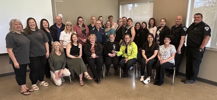 Recognizing the impact food insecurity was having on their clients, Mental Health and Addictions Services (MHAS) staff in Melfort tried to help by stocking their office mini fridge with food, but quickly found demand outpaced supply. Within a year, generous community donations have led to the establishment of a community pantry with shelving for canned goods and hygiene products, a coffee warm-up station, birthday-themed food boxes, and freezers stocked with soup from a local restaurant, excess meals from the local assisted living facility, freezer meals prepared by volunteers, and food rescue – the recovery of consumable surplus food – from a local grocery store. “The innovative part is the cost of this food is zero due to the generous donations from community partners,” explained Pattie Draude, Primary Health Care Manager, Saskatchewan Health Authority.