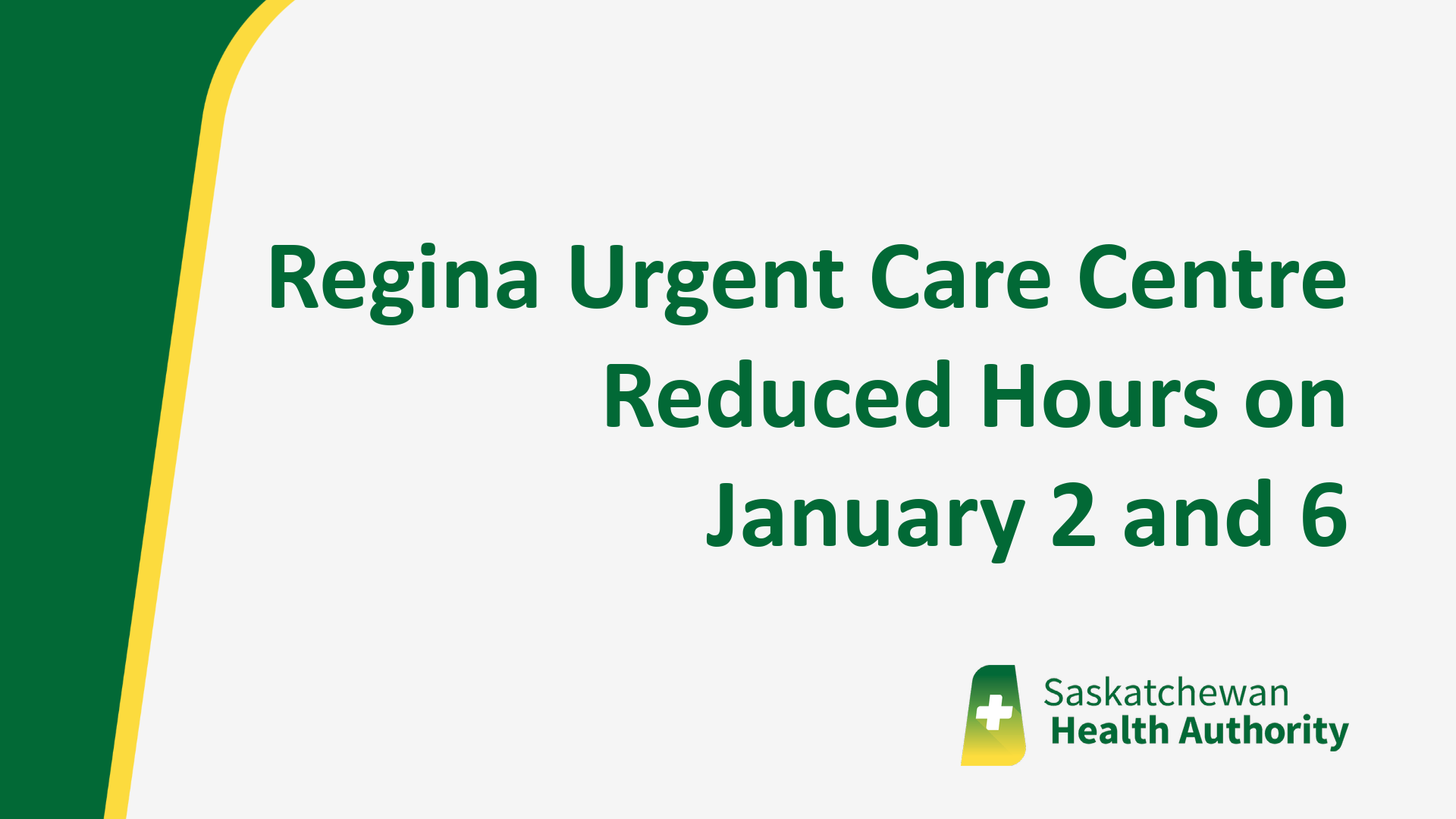 Regina Urgent Care Centre Reduced Hours on January 2 and 6