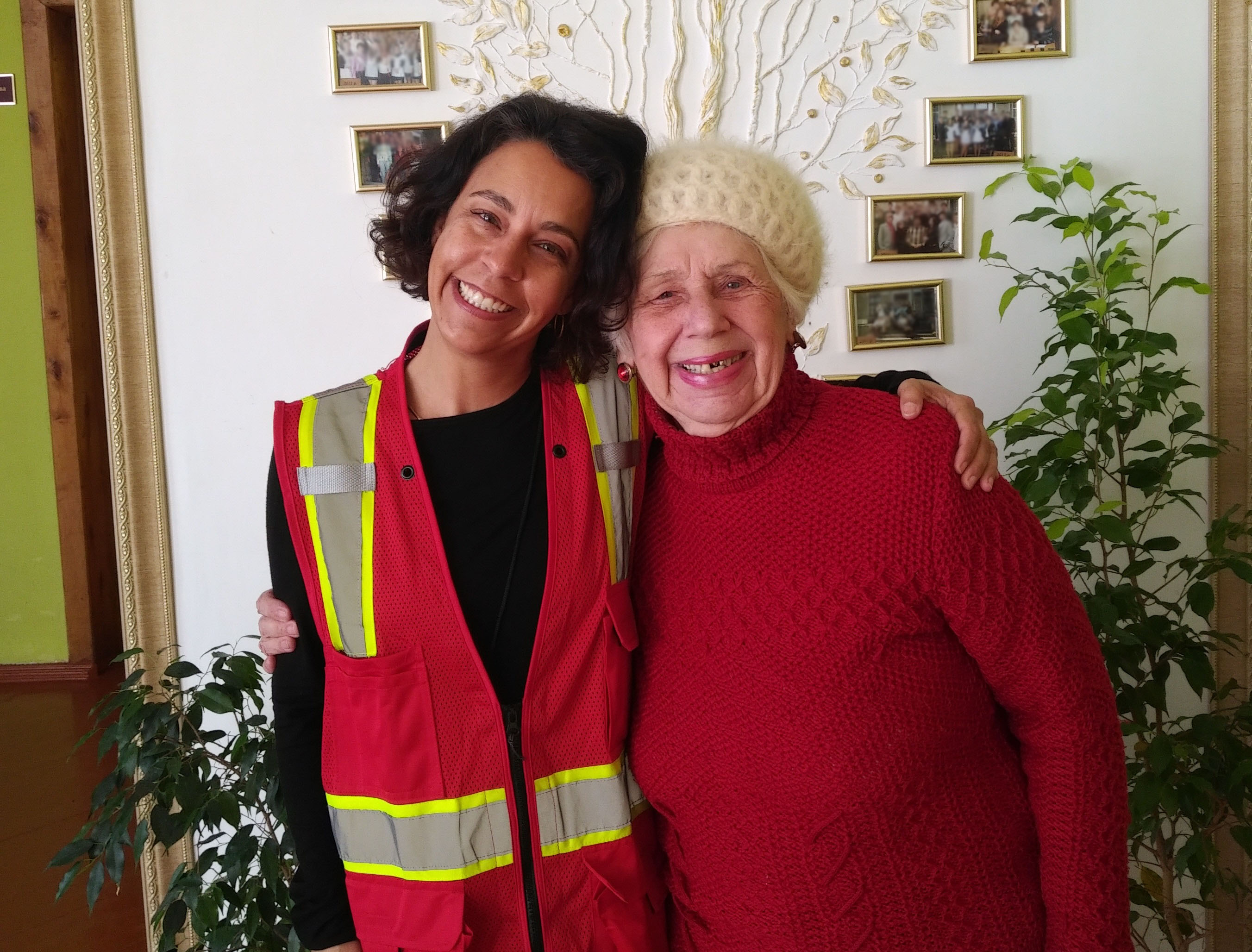 There were so many rewarding experiences and moments on this trip. One that was particularly memorable was talking with an absolutely lovely older lady. It turned out that she had been a psychologist herself before she retired—we had many things to discuss! At the end of our time together she carefully took off her lovely old fur coat and handmade sweater to show me that she had a red shirt like mine and insisted upon hugs and photos together.